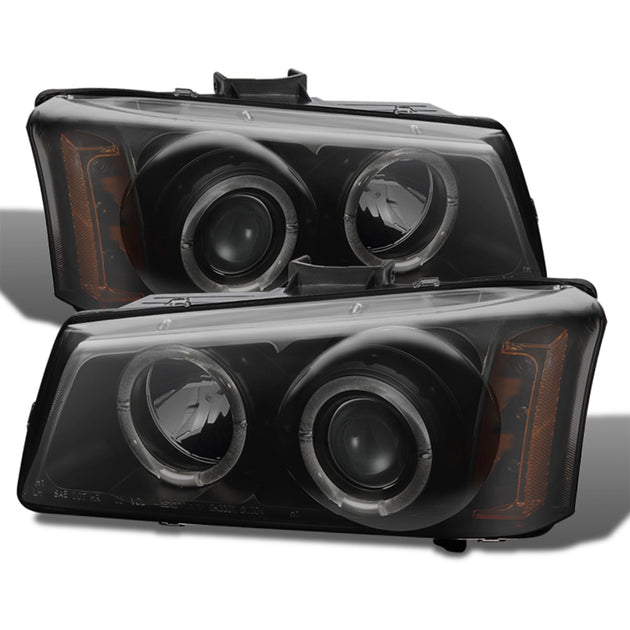 AKKON - For 2003-2006 Chevy Silverado Dual Halo Projector Headlights + Bumper Lamps + Tail Lights [Black Smoke Housing]