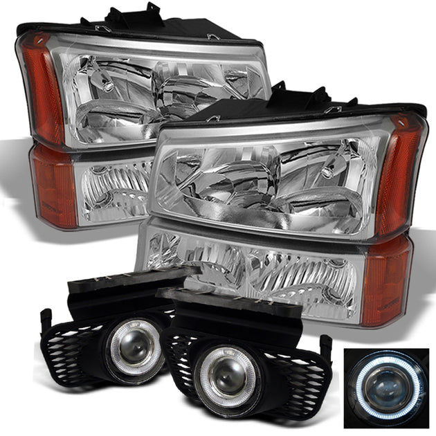 AKKON - For 2003-2006 Silverado Avalanche Pickup Truck OE Replacement Chrome Headlights +Bumper Lamp+ Halo Projector Fog Lights