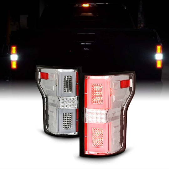 AKKON - Fits 2015 2016 2017 Ford F150 Pickup [O-LED Tube] Sequential Signal Chrome Tail Lights Brake Lamps Pair Left + Right
