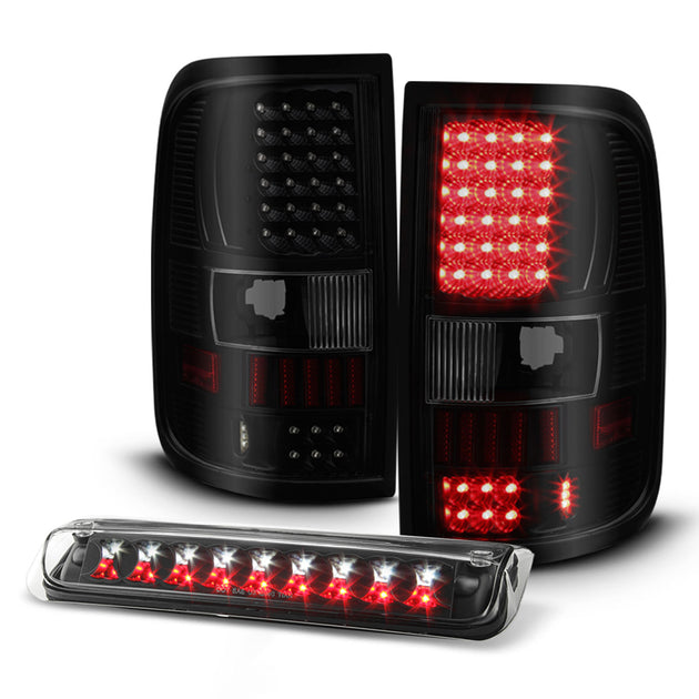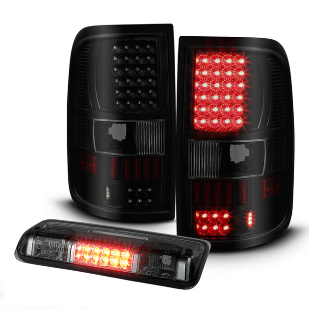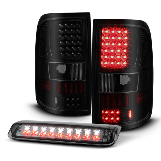 AKKON - For 2004-2008 Ford F150 Pickup Black Housing LED Tail Lights Lamps + LED 3rd Brake Light - Smoke Lens Combo