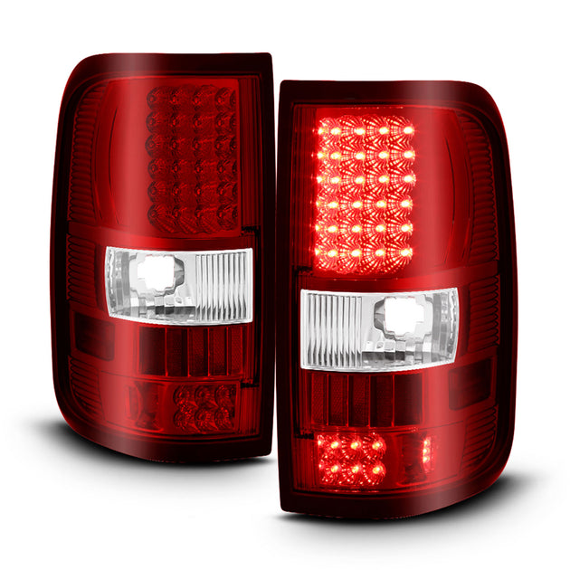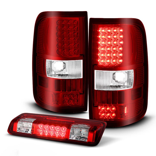 AKKON - For 2004-2008 Ford F-150 Pickup LED Tail Lights Lamps in Red Lens Chrome Housing + Red 3rd Brake Light