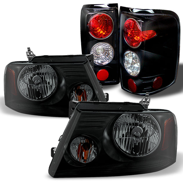AKKON - For 2004-2008 Ford F150 F-150 Pickup truck Black Smoked Headlights + Black Tail Brake Lights Lamps