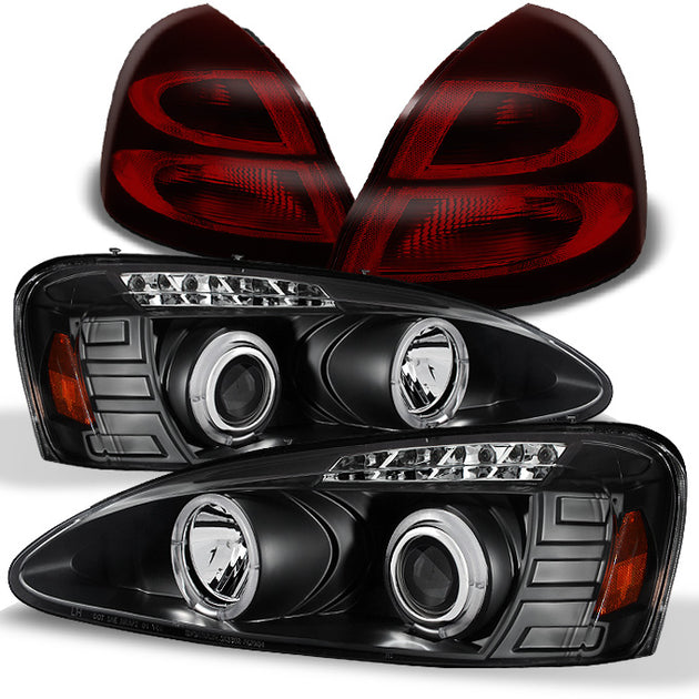 AKKON - For 2004-2008 Pontiac Grand Prix Black Halo LED Projector Headlights + Dark Red Tail Lights Lamps