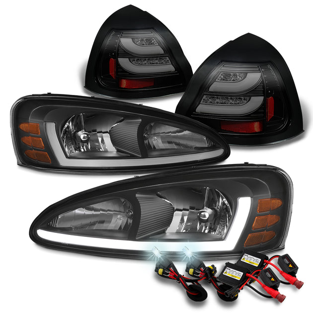 AKKON - For 2004-2008 Pontiac Grand Prix LED Light Bar DRL Black Headlights w/ 6000K HID & Tail Lamps[Black Smoke]