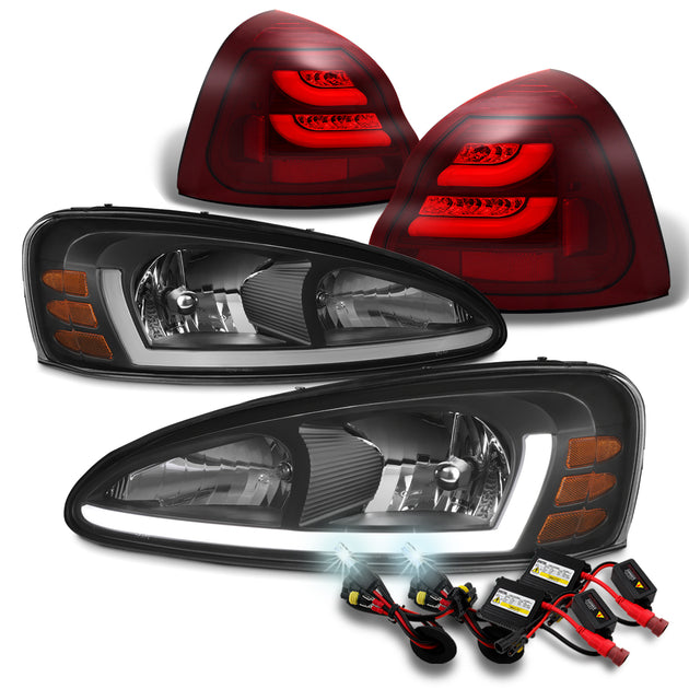 AKKON - For 2004-2008 Pontiac Grand Prix LED Light Bar DRL Black Headlights w/ 6000K HID & Dark Red Tail Lamps