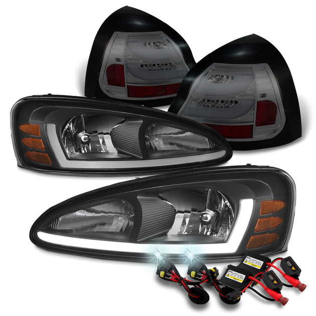 AKKON - For 2004-2008 Pontiac Grand Prix LED Light Bar DRL Black Headlights w/ 6000K HID & Tail Lamps w/ Smoke Housing