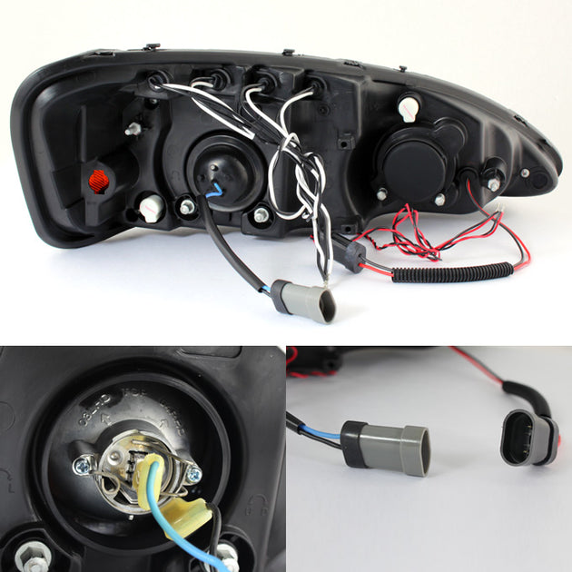 AKKON - For 2004-2008 Pontiac Grand Prix LED Light Tube DRL Black Housing Headlights w/ Ember Corner Lamps