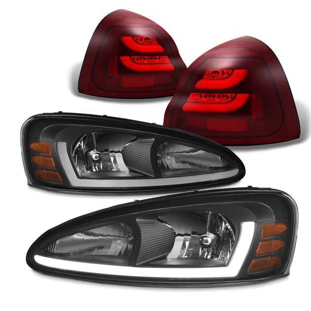 AKKON - For 2004-2008 Pontiac Grand Prix LED Light Tube DRL HeadLamp & Dark Red LED Tail Lamps