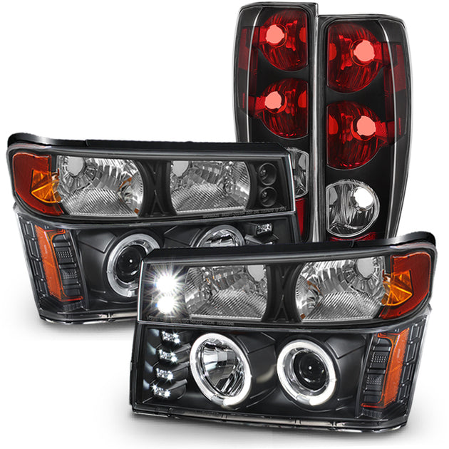 AKKON - For 2004-2012 Chevy Colorado | GMC Canyon Replacement Pair LH + RH Black Head Lights & Tail Brake Lights
