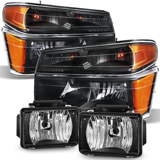 AKKON - For 2004-2012 Chevy Colorado GMC Canyon | 06-08 Isuzu Pickup Truck Black Headlights +Black Fog Light Lamp