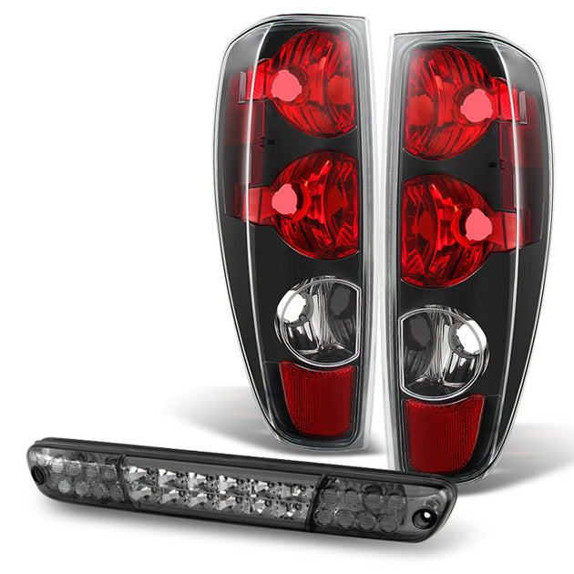 AKKON - For 2004-2012 Chevy Colorado | GMC Canyon Replacement Black Tail Lights Lamps + Smoke 3rd Brake Light