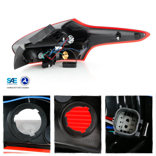 AKKON - Fits 2015-2018 Ford Focus Hatchback Model Chrome Red Tail Lamp Brake Light Passenger Right Side Replacement