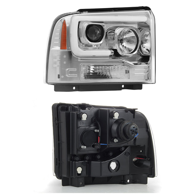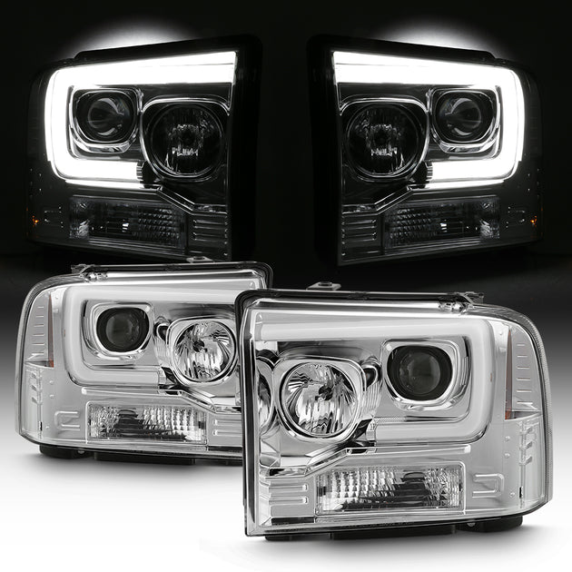 AKKON - For 2005 2006 2007 Ford F250 F350 F450 Superduty LED Tube Bar Projector Headlights Pair Left+Right