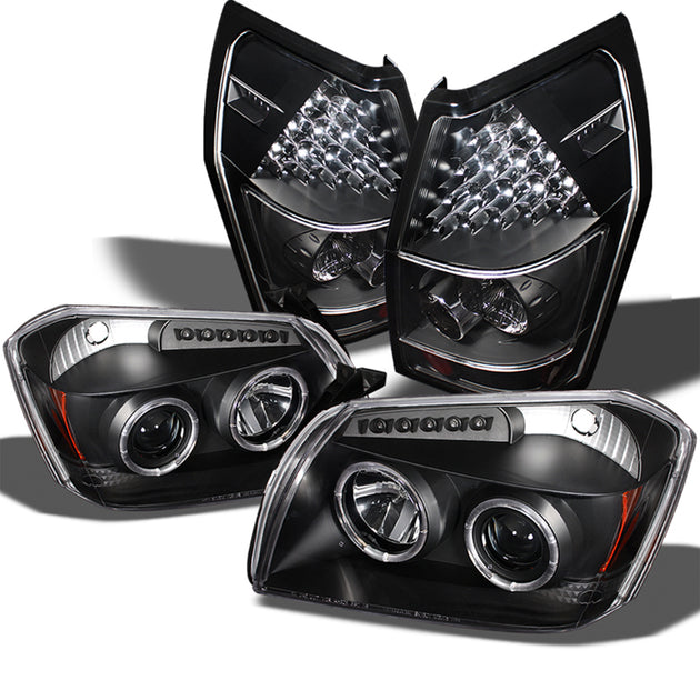 AKKON - For 2005-2007 Dodge Magnum LED Dual Halo Projector Headlight + LED Tail Lights [Black Housing]