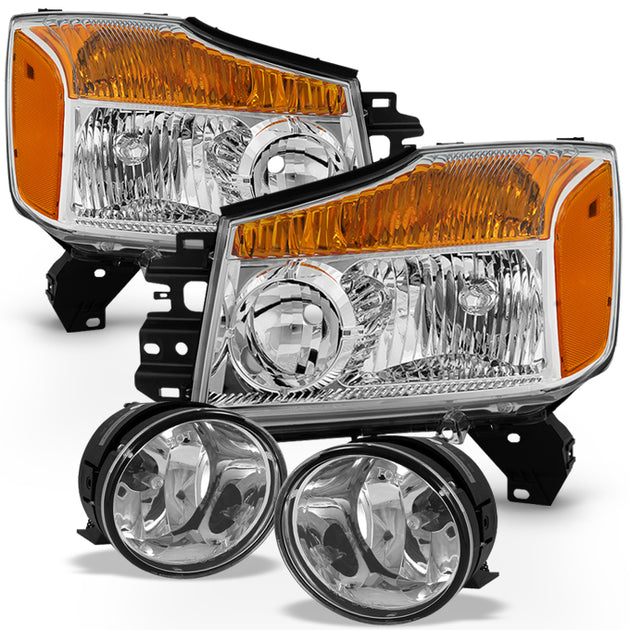 AKKON - For 2005-2007 Armada | 04-15 Titan Clear Headlights + Clear Fog Light W/Switch Combo