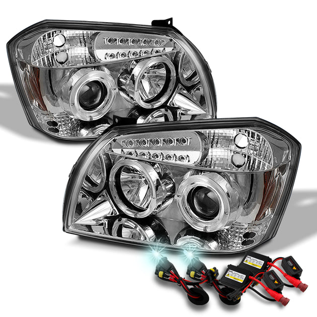 AKKON - For 2005-2007 Dodge Magnum LED Dual Halo DRL Projector Headlights + 8000K Xenon HID Kit [Chrome Housing]
