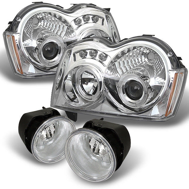 AKKON - For 2005-2007 Jeep Grand Cherokee SUV WK Dual LED Halo Ring Chrome Clear Headlights + Halo Fog lights