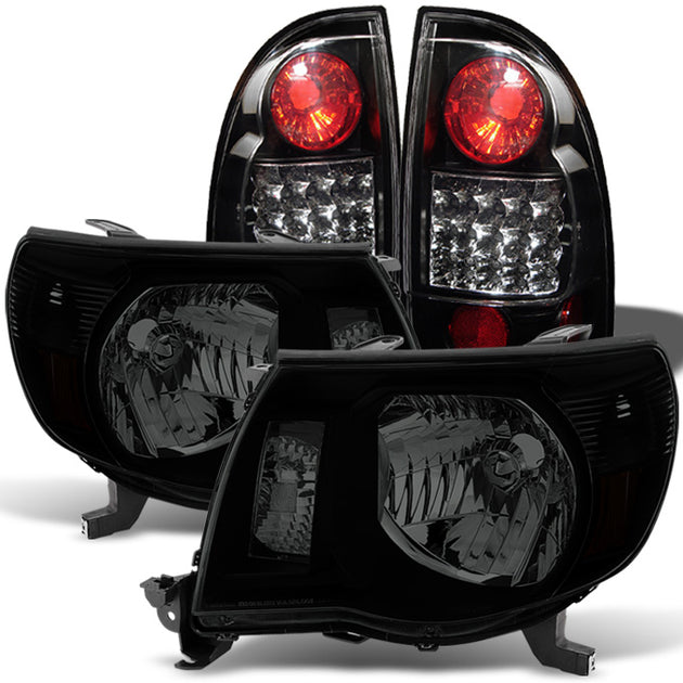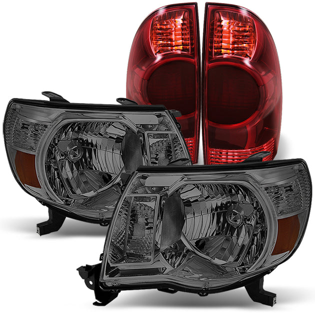 AKKON - For 2005-2011 Toyota Tacoma Smoked Lens Headlights + Dark Red Tail Brake light Replacement Pair Left+Right