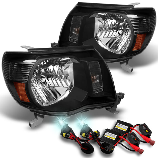 AKKON - For 2005-2011 Toyota Tacoma OE Replacement Black Headlights Pair Head Lamps + 8000K Slim White HID Xenon Set