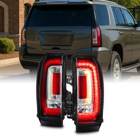 AKKON - Fits 2015-2020 GMC Yukon XL LED Tube Bar Running Brake Signal Chrome Tail Light Pair Driver Left+Passenger Right