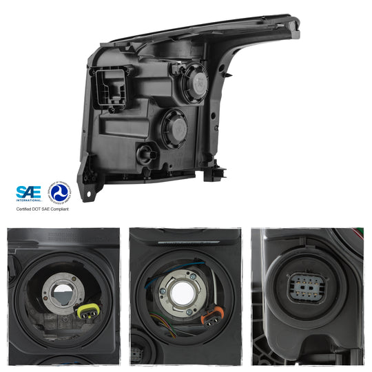 AKKON - Fits 2015-2020 GMC Yukon XL [Halogen Type] Projector Black Headlight Passenger Right w/ LED DRL Running Signal