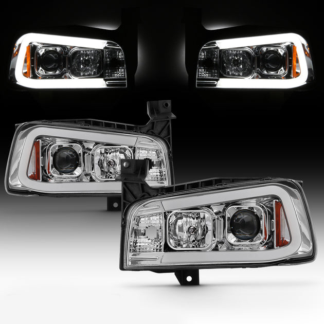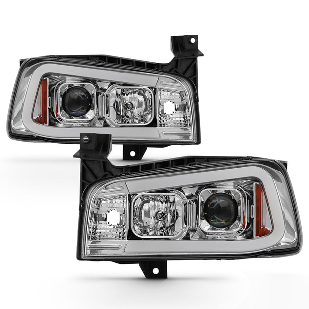 AKKON - For 2006-10 Dodge Charger LED Daytime Running Lamp Bar Projector Headlights Chrome Housing Clear Lens Halogen Model Only