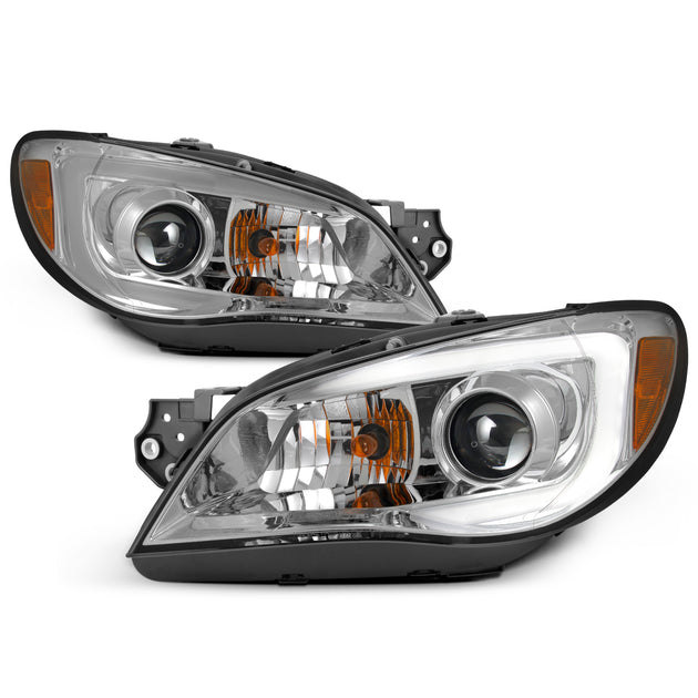 AKKON - For 2006-07 Subaru Impreza LED Daytime Running Lamp Strip Projector Headlights Chrome Housing Clear Lens Full Set