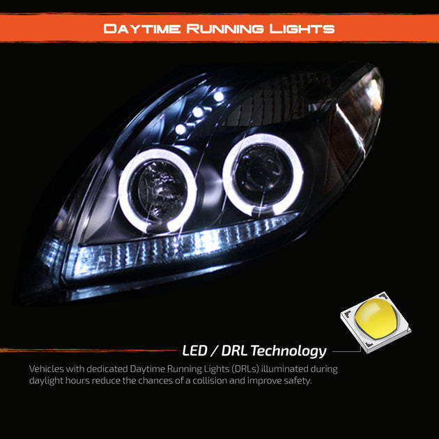 AKKON - For 2006-2008 Toyota Yaris 2-Door Hatchback LED Halo Ring Projector Headlight | Right & Left Side Black Housing