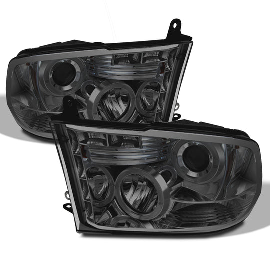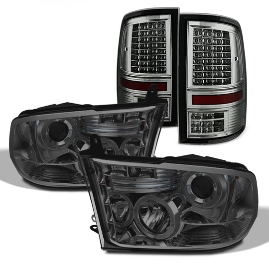 AKKON - Fit 2009-2018 Dodge Ram LED Halo Projector Headlights + LED Tail Lights [Smoke Lens Assemblies Combo]