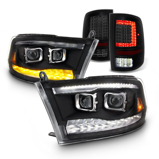 Regular price $425.99This is a 100% brand new pair of Headlights Replacement Assemblies in Midnight Black Housing With Crystal Clear Lens, Tail Lights Assemblies in Black Red Housing With Crystal Clear Lens.Compatible With: 2009-2018 Ram 1500 2010-2018 Ram... -