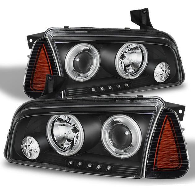 AKKON - For 2006-2010 Dodge Charger All Model Black CCFL Halo Projector LED Headlights + Corner Signal Lights