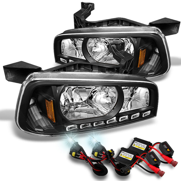 AKKON - For 2006-2010 Dodge Charger Black 1 Piece LED Headlights w/Corner Signal Lamps +Slim 6000K White HID Xenon