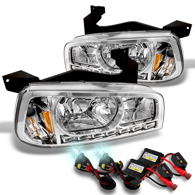 AKKON - For 2006-2010 Dodge Charger LED Dual Halo DRL Projector Headlights Chrome Housing + 8000K HID Kit