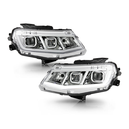 AKKON - Fits 2016 2017 2018 Chevy Camaro [Halogen Type] LED Tube Bar DRL Parking Projector Chrome Headlights Pair Left+Right