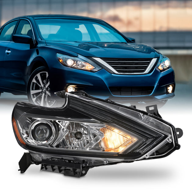 AKKON - Fit 2016 2017 2018 Altima [Halogen Type] w/ Chrome Bezel Headlamp Headlight w/o LED Running Passenger Right Side