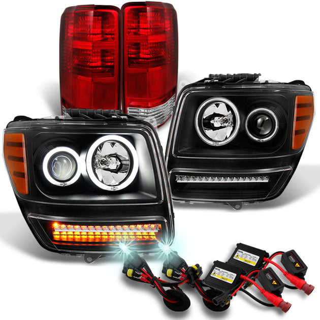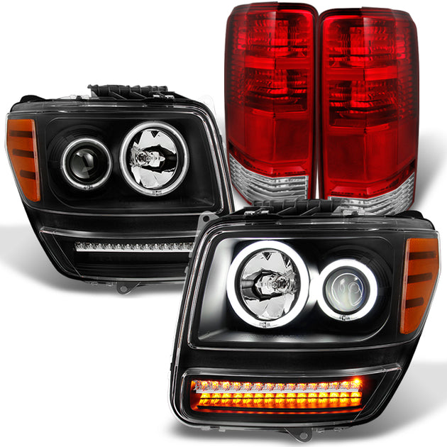 AKKON - For 2007-2012 Nitro Dual CCFL Halo Black Projector LED Signal Headlights + Red Clear Tail Lights Combo