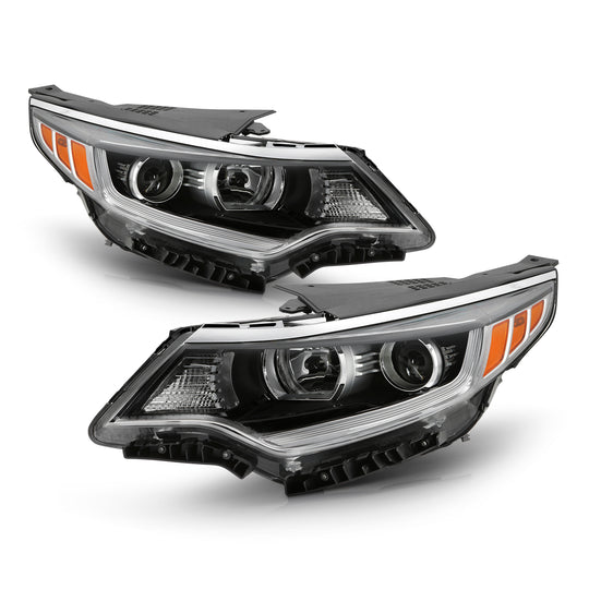 AKKON - Fits 2016 2017 2018 Optima [Halogen Type] Projector Black Headlight Headlamp Pair Driver+Passenger [w/o LED DRL Model]