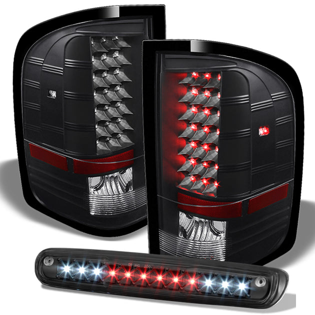 AKKON - For 2007-2013 Chevy Silverado 1500 2500 3500 Smoked LED Taillights + LED 3Rd Brake Lamp Combo Pair Set