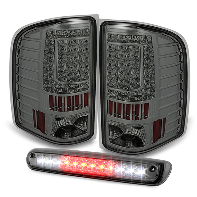 AKKON - For 2007-2013 Chevy Silverado 1500 2500 3500 Red Smoked LED Taillights + Smoked LED 3Rd Brake Lamp Combo