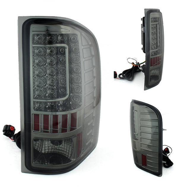 AKKON - For 2007-2013 Chevy Silverado 1500 2500 3500 Smoked LED Light Bar Taillights + LED 3Rd Brake Lamp Pair