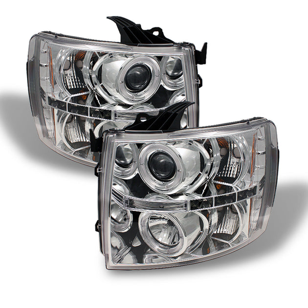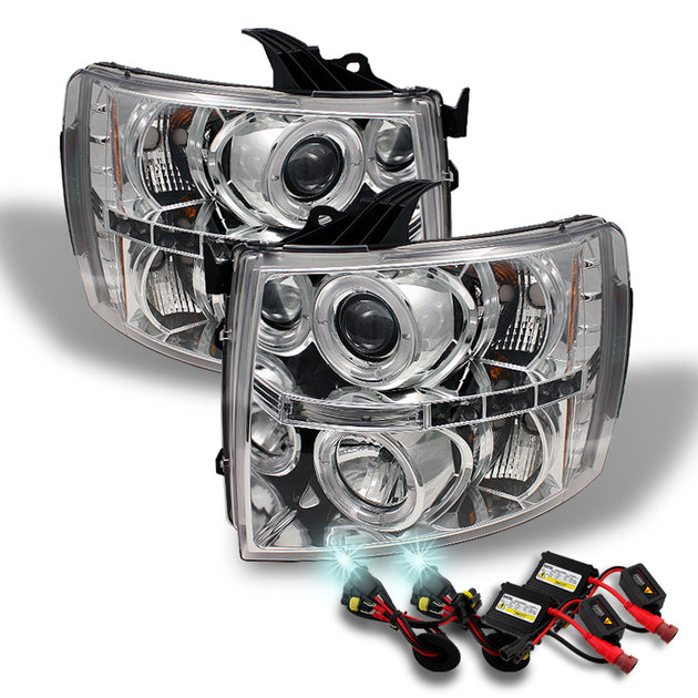 AKKON - For 2007-2013 Chevy Silverado Pickup Dual Halo DRL Projector Chrome Housing Headlights w/ 8000K Xenon HID Kit
