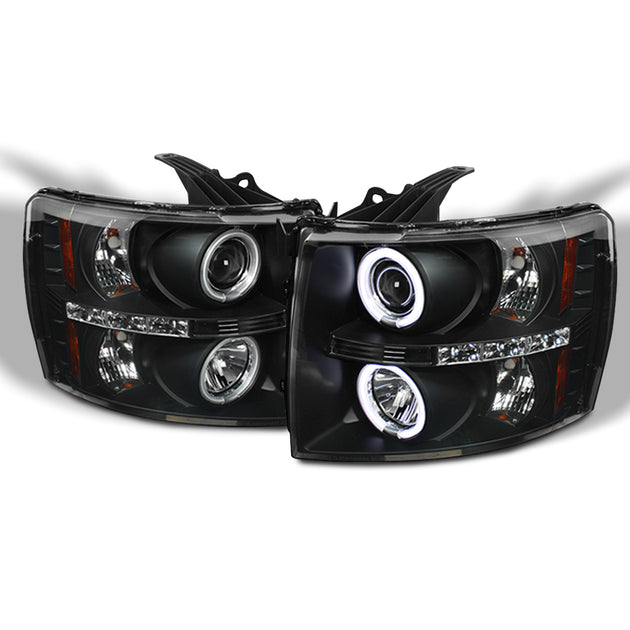 AKKON - For 2007-2013 Chevy Silverado Pickup Dual CCFL Halo Projector Black Housing Headlights + Tail Lamps LED Set