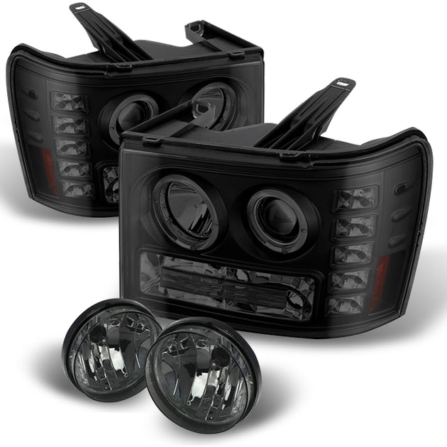 AKKON - For 2007-2013 GMC Sierra Black smoked Halo Projector LED Headlights + Smoked Fog Lights Lamps