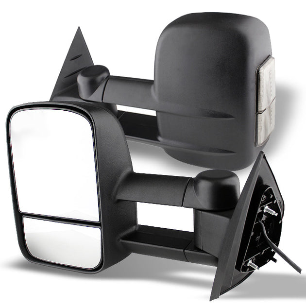 AKKON - For 2007-2013 Silverado Sierra Power Heated Tow Telescoping SMOKE LED Signal Mirrors Left + Right Side
