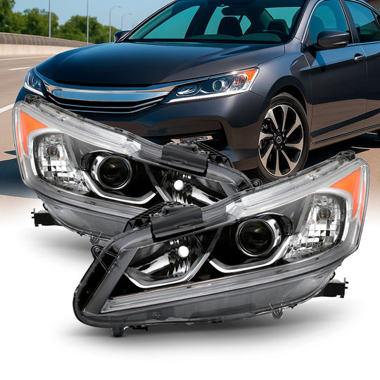 Regular price $215.99SKU: HD-JH-HA16-4D-LED-AM-BK This is a 100% brand new pair of Replacement Headlights in Black Housing with Clear Lens Compatible With: 2016-2017 Honda Accord EX EX-L SE Sport Models ATTN: Compatible Factory Halogen Type w/ LED DRL... -