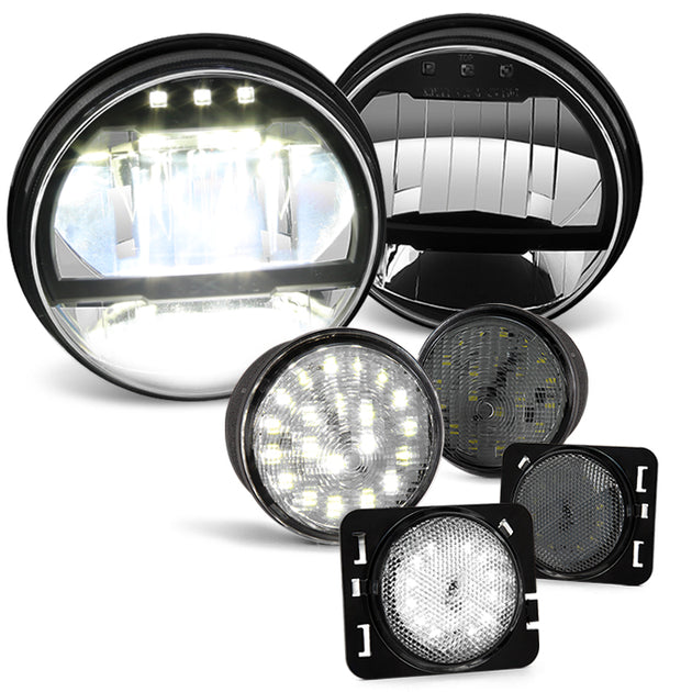 AKKON - For 2007-2016 Jeep Wrangler Full LED Front Signal Parking Lights + Fender Side Marker Lights Assemblies