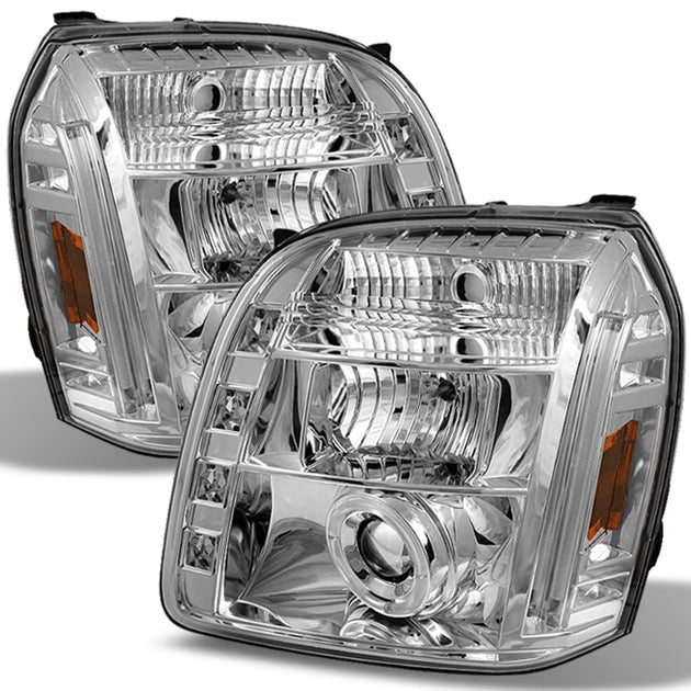 AKKON - For 2007-2014 GMC Yukon XL 1500 / XL 2500 Denali SUV Dual Halo LED Projector Chrome Headlights Front Lamps Pair