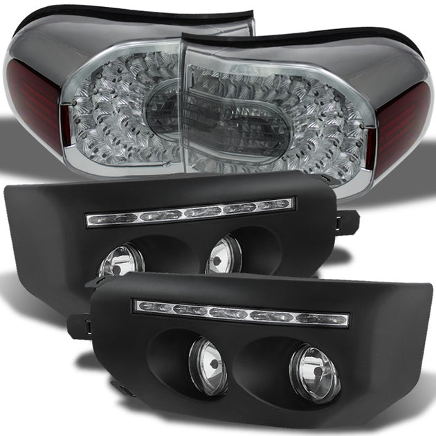 AKKON - For 2007-2014 Toyota FJ Cruiser Black Bezel LED Tail lights + Smoked LED 3rd Brake light Combo