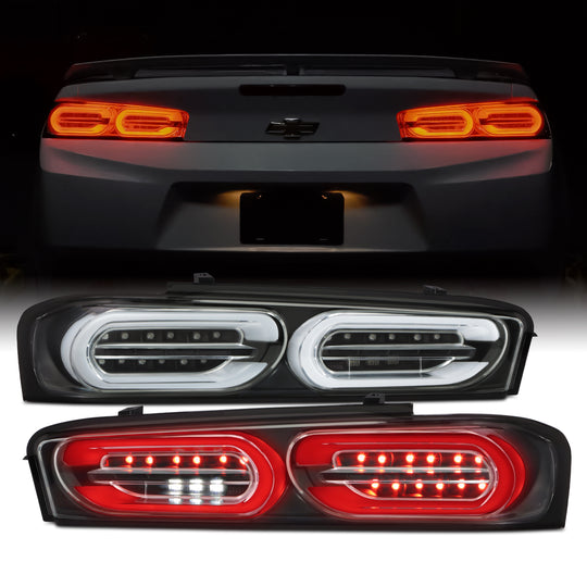 Regular price $355.99This is a 100% brand new pair of Replacement Tail Lights in Black Housing Clear Lens Compatible With: 2016-2018 Chevy Camaro with Factory Incandescent Tail Light Model ATTN: Compatible with Factory Halogen Type Incandescent Tail Light... -