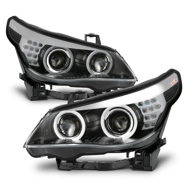 AKKON - For 2008 2009 2010 BMW E60 5-Series 535i 550i M5 [Non-AFS] [Non-Halogen] LED Black Projector Headlights Left+Right Pair